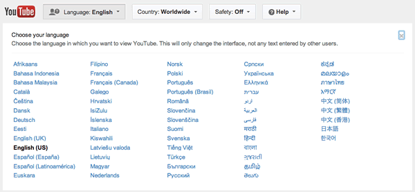 YouTube'un kullanıcı arayüzü dilini değiştirmek için YouTube ana sayfasının alt kısmına gidin.
